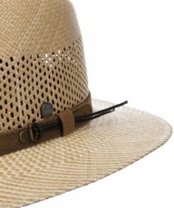 In summer, you can’t do without the airy straw hat. It is woven in Ecuador from 100% Panama straw and features a brim patterned in two natural shades. A wide air-permeable strip is incorporated into the crown to keep your head cool on hot summer days. The narrow trim band is made of leather.