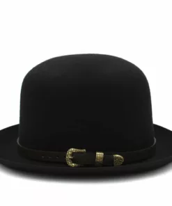 Our classic felt Bowler hat, a timeless piece that exudes sophistication and style. Crafted with the finest materials, this hat features a sleek design complemented by a leather hatband, adding a touch of elegance to its overall look. Whether you’re aiming for a formal or casual ensemble, this Bowler hat is the perfect accessory to elevate your wardrobe. Embrace tradition with a modern twist embrace the Bowler hat. The crown has a height of 4.72 inches, and the brim has a width of 1.97 inches.
