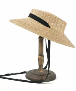 Flat Top Straw Beach Hat with Tie Top
