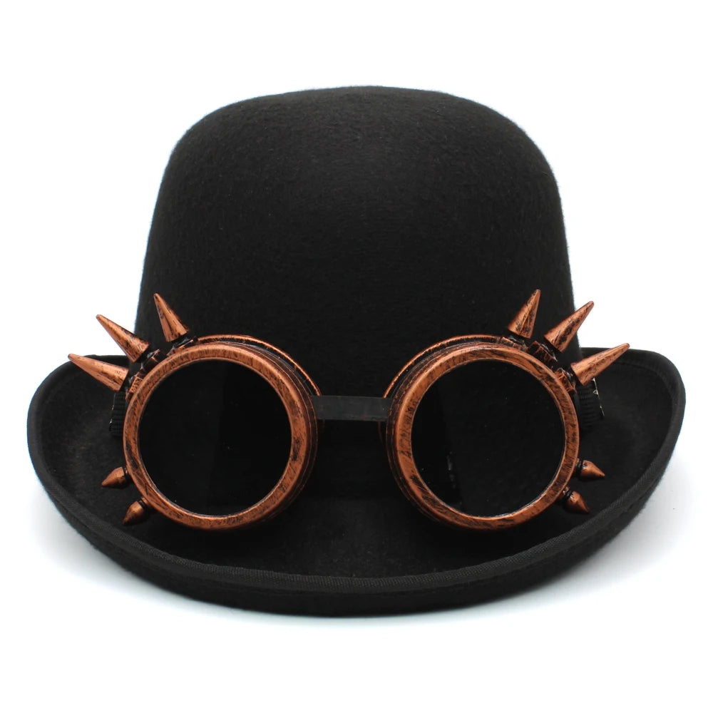 Elevate your style with our distinguished Bowler hat, featuring a unique eyeglass-adorned hatband. This timeless piece is meticulously crafted, boasting a crown height of 4.72 inches and a brim width of 1.97 inches. Whether you’re aiming for a formal or casual look, this Bowler hat is the perfect accessory to add a touch of individuality to your ensemble. The eyeglass-accented hatband adds an intriguing and sophisticated element to this classic accessory, making it a standout choice for any occasion. Make a statement and elevate your wardrobe with our impeccably designed Bowler hat.