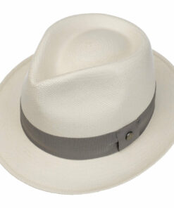 The timeless design of the traveller focuses on the look of the beautiful material from which it is made. The fine weave features a small, delicate zigzag that adorns the head and brim. The natural differences in colour set off the pattern attractively by creating a heathered look. A wonderfully classic summer traveller for sunny days.