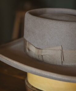 The Rustic Rider Felt Pork Pie Cowboy Hat, a stylish and versatile addition to your wardrobe. Crafted from high-quality felt, this hat offers both comfort and durability, making it perfect for any outdoor adventure or casual outing.