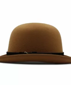 Our classic felt Bowler hat, a timeless piece that exudes sophistication and style. Crafted with the finest materials, this hat features a sleek design complemented by a leather hatband, adding a touch of elegance to its overall look. Whether you’re aiming for a formal or casual ensemble, this Bowler hat is the perfect accessory to elevate your wardrobe. Embrace tradition with a modern twist embrace the Bowler hat. The crown has a height of 4.72 inches, and the brim has a width of 1.97 inches.