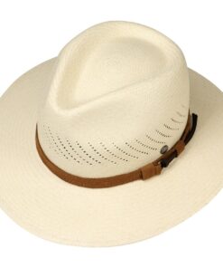 Air breezes through this woven-straw openwork panama hat. The summery lightness for the traveller from Ecuadorian handiwork is given an Indian emphasis by the wild leather band.