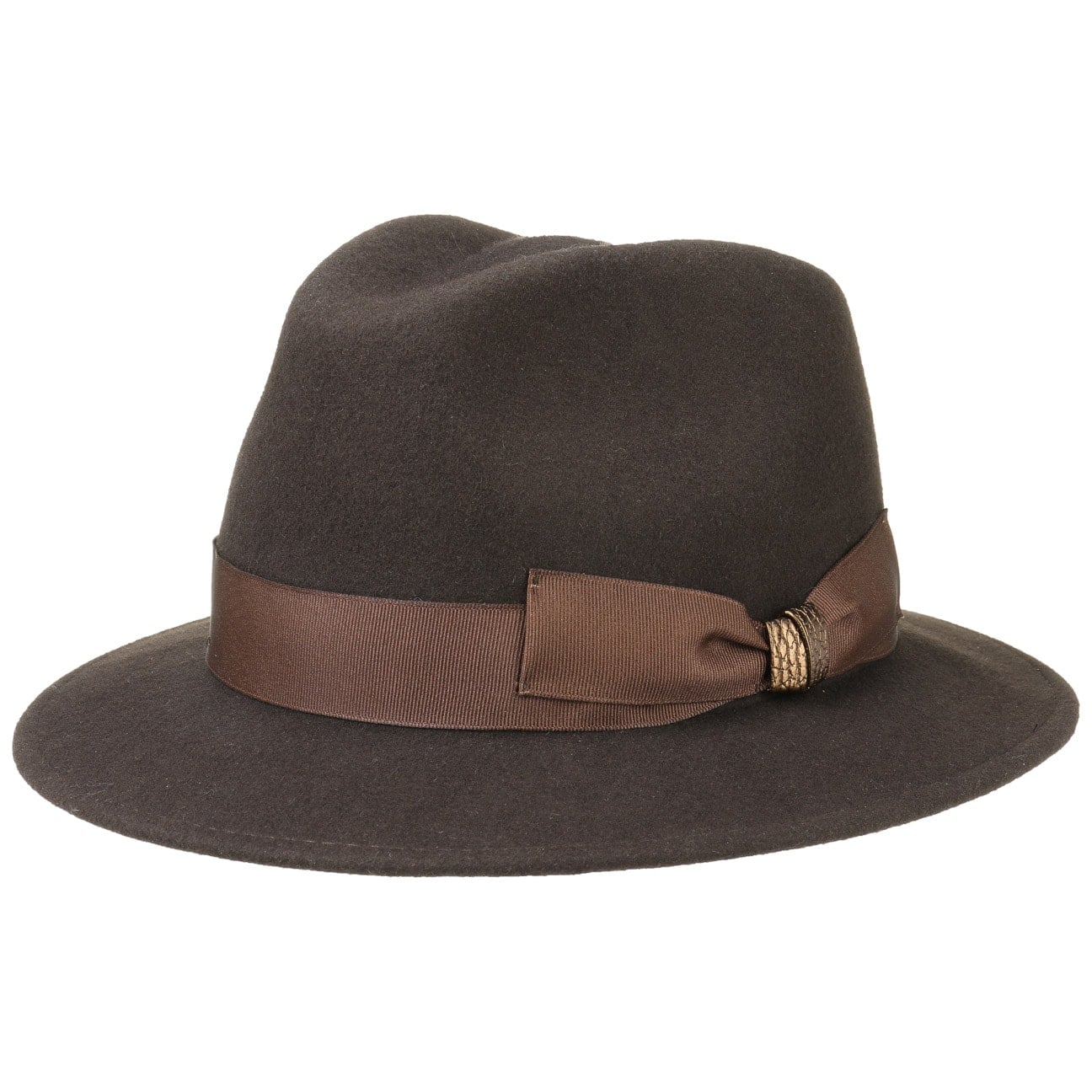 This traveller hat impresses with its weather-proof quality and harmonious look. Crushable and water-repellent, this handmade wool felt hat is comfortable to wear and is unfazed by rain showers. Rain does nothing to impair the rustic beauty of this plain-coloured felt hat with harmoniously coloured trim and side bow.